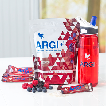 Αυτό το νόστιμο και θρεπτικό ρόφημα για αθλητές έχει νόστιμη γεύση μούρων και περιέχει πέντε γραμμάρια L-αργινίνη ανά μερίδα συν βιταμίνες. Το ARGI + είναι γεμάτο με θρεπτικά συστατικά, συμπεριλαμβανομένης της ημερήσιας αξίας σε L-αργινίνη, που είναι ένα δημοφιλές αμινοξύ και ένα δομικό στοιχείο για πρωτεΐνες και βασικές βιταμίνες Β που υποστηρίζουν το νευρικό σύστημα, τον φυσιολογικό μεταβολισμό των πρωτεϊνών και τον σχηματισμό ερυθρών αιμοσφαιρίων. H συσκευασία περιέχει 30 φακελάκια στικ