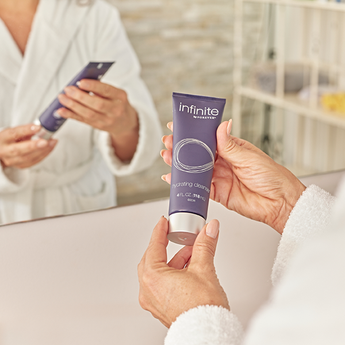 Το Hydrating Cleanser της σειράς infinite by Forever™ είναι ένα καθαριστικό χωρίς άρωμα που συνδυάζει τη δύναμη της αλόης βέρα, της καρύδας και του μήλου για να απομακρύνει τους ρύπους, τη λιπαρότητα και το μακιγιάζ, αφήνοντας στο δέρμα ένα πέπλο ενυδάτωσης που του χαρίζει απαλότητα. Εκτιμάται ότι η μηλιά ήταν από τα πρώτα δέντρα που καλλιεργήθηκαν. Ο χυμός που ρέει μέσα από αυτό το φρούτο έχει αντισταθεί στις περιβαλλοντικές αλλαγές κατά την πάροδο χιλιάδων χρόνων. Αξιοποιήσαμε δύο βασικά συστατικά από αυτό το πλούσιο σε βιταμίνες φρούτο: Τα εκχυλίσματα μήλου και τα αμινοξέα μήλου.